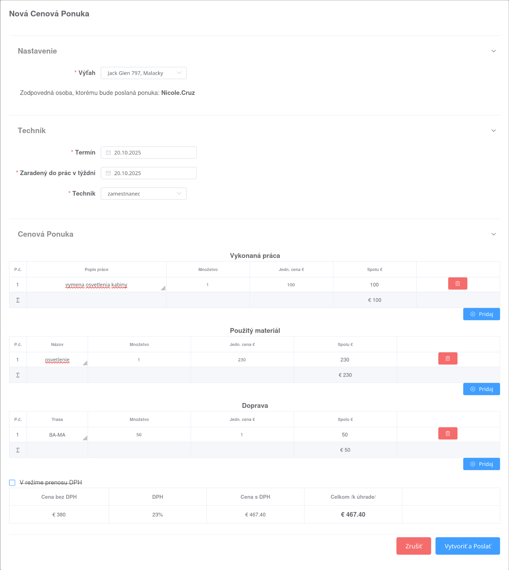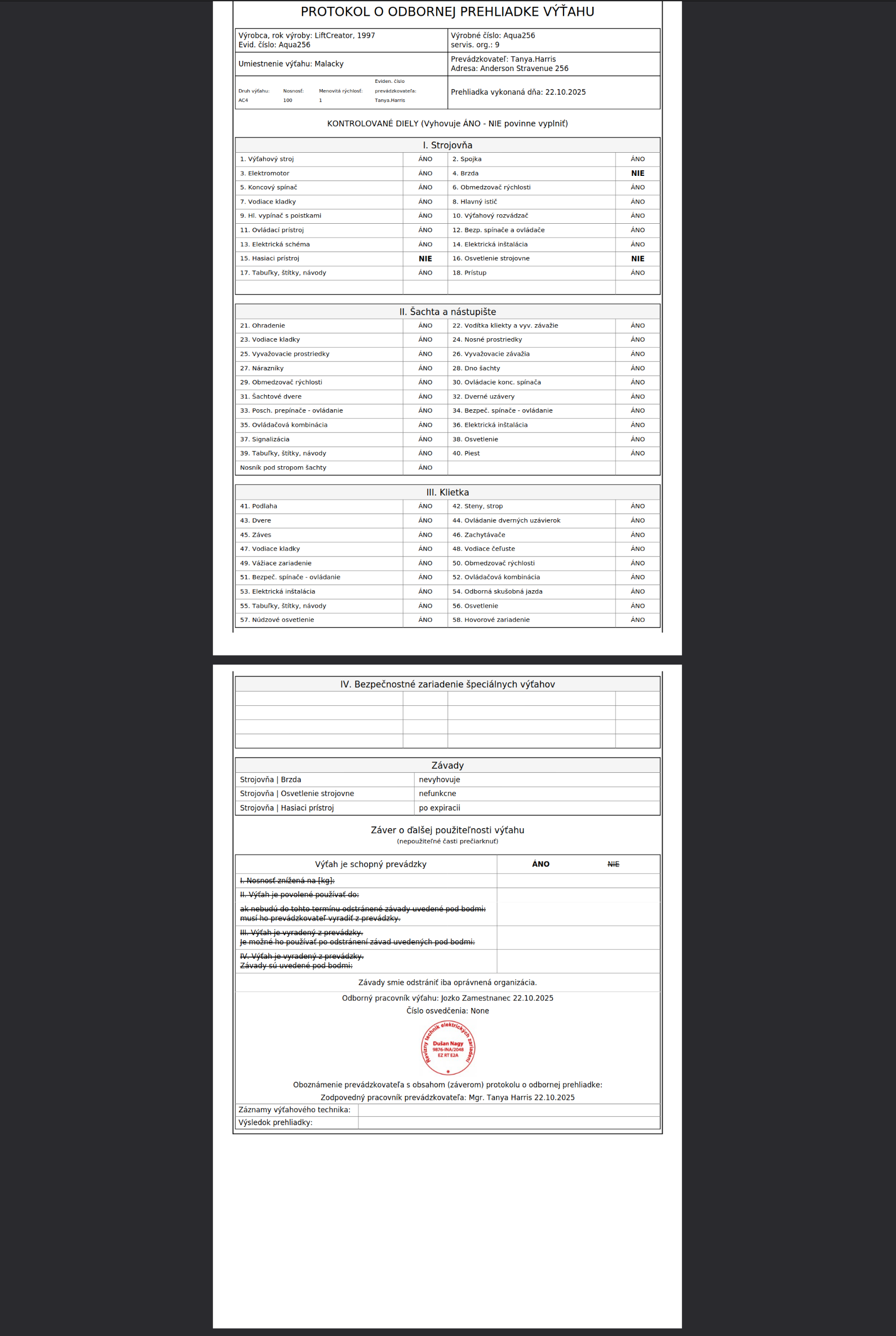 Správca výťahu dostane PDF revízie, môže ju odobriť alebo zamietnuť, a následne vytvoriť servisný zásah alebo cenovú ponuku.